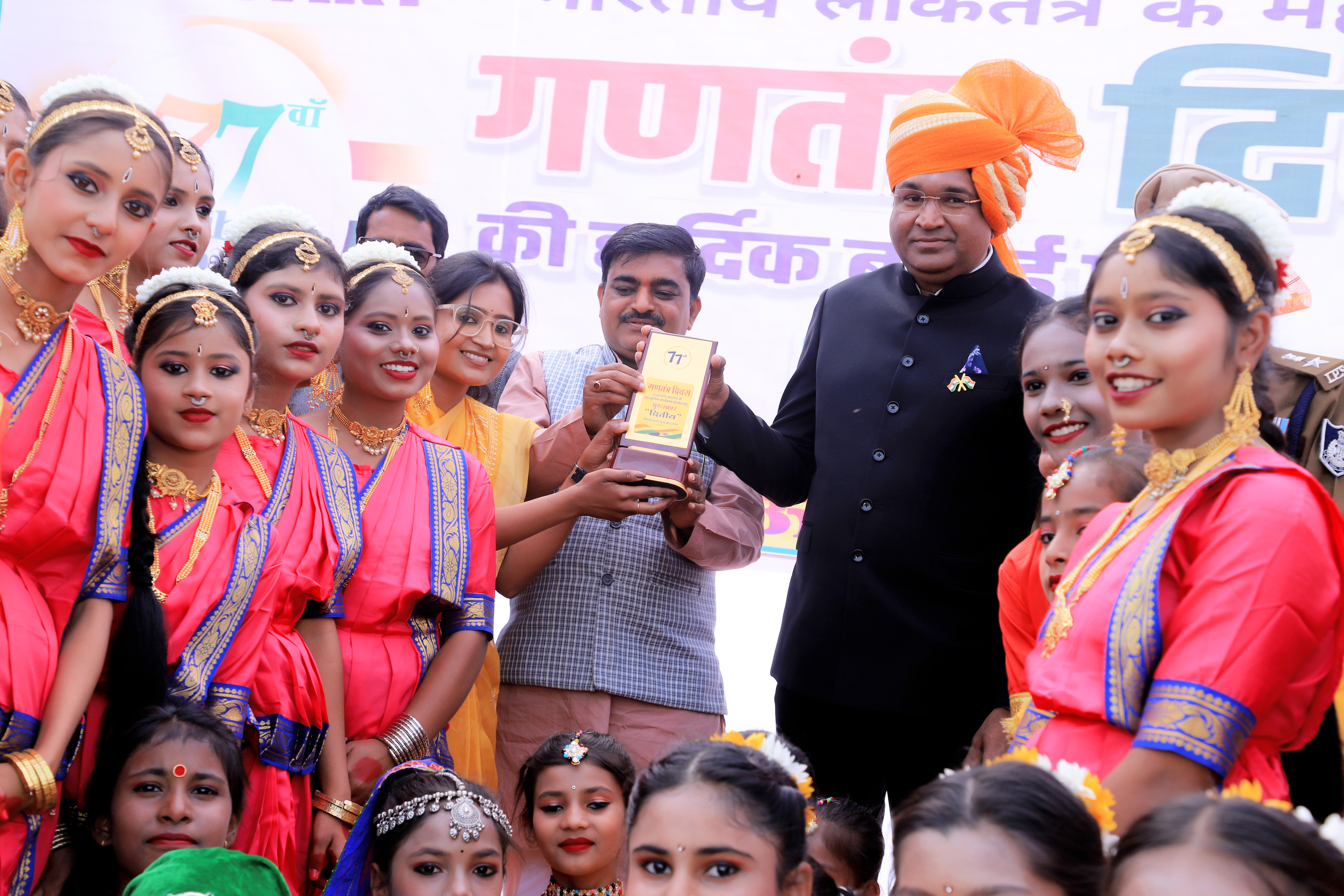 गणतंत्र दिवस पर हमारे सितारों की शानदार जीत "हुनर, हौसला और अटूट विश्वास—जब ये मिलते हैं, तब इतिहास रचा जाता है।" अत्यंत हर्ष और गर्व के साथ हम यह शुभ समाचार साझा कर रहे हैं कि गणतंत्र दिवस के पावन अवसर पर मऊगंज जिला मुख्यालय में आयोजित जिला स्तरीय सांस्कृतिक प्रतियोगिता में हमारे विद्यालय ने अपनी कला का परचम लहराया है। हमारे प्रतिभावान विद्यार्थियों ने अपनी अद्भुत और भावपूर्ण प्रस्तुति से न केवल उपस्थित जनसमूह का दिल जीता, बल्कि द्वितीय स्थान (Second Position) प्राप्त कर पूरे विद्यालय परिवार का सिर गर्व से ऊँचा कर दिया है। सम्मान के वो गौरवशाली पल: हमारे विद्यार्थियों की इस कड़ी मेहनत और प्रतिभा को सराहते हुए आदरणीय जिला कलेक्टर महोदय ने स्वयं अपने कर-कमलों से विद्यालय को विजेता ट्रॉफी प्रदान कर सम्मानित किया। कलेक्टर साहब के हाथों मिला यह सम्मान हमारे बच्चों के आत्मविश्वास और उनके सपनों को एक नई उड़ान देने वाला है।